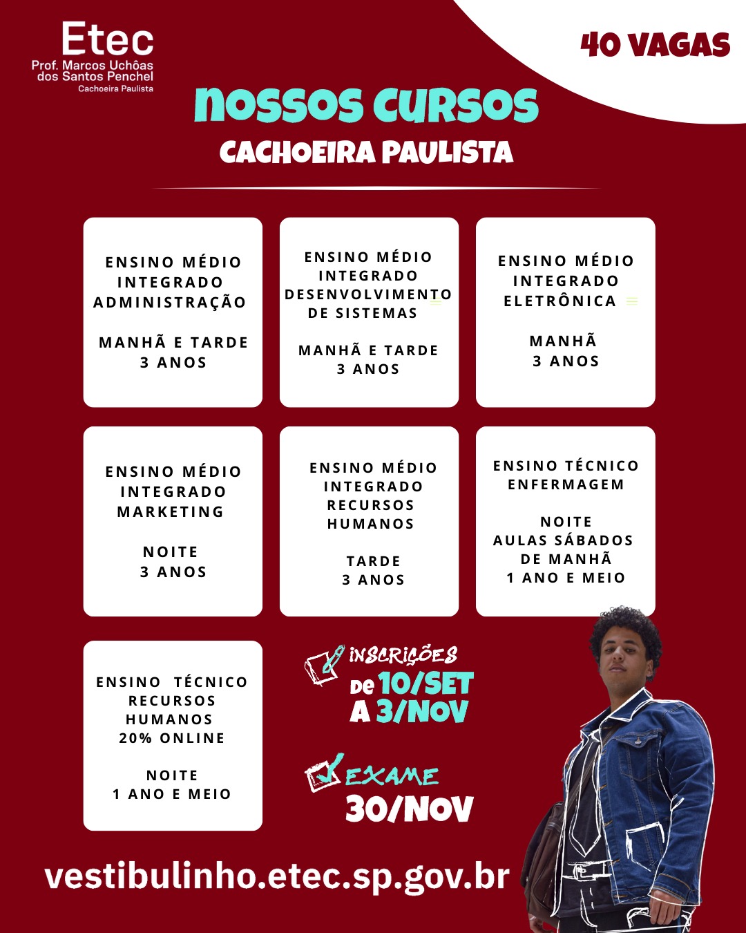 Administração Administração – Integrado ao Ensino Médio Desenvolvimento de Sistemas – Integrado ao Ensino Médio Eletrônica – Integrado ao Ensino Médio Enfermagem Informática – Integrado ao Ensino Médio Recursos Humanos Turismo Receptivo